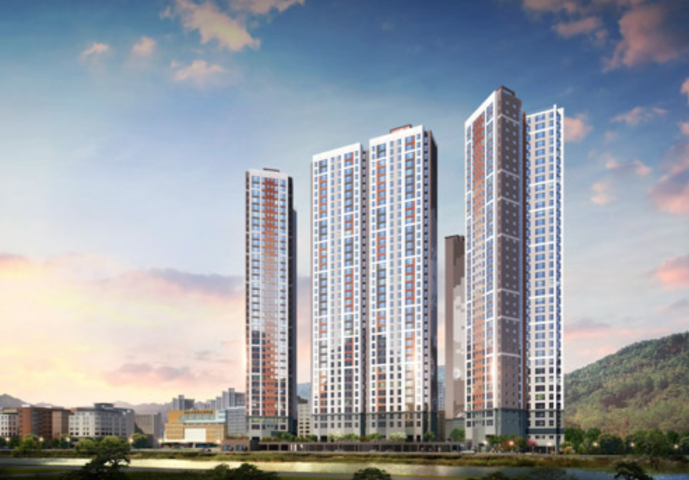 위치 : 경남 김해시 무계동 무계지구도시개발사업조합지구 내 5블록 8-2노트 외 9필지.지하 3층부터 무려 지상 38층까지! 김해 장유를 대표하는 고층 아파트로 360가구의 아파트 가구와 오피스텔 54실로 총 414가구로 조성된다.